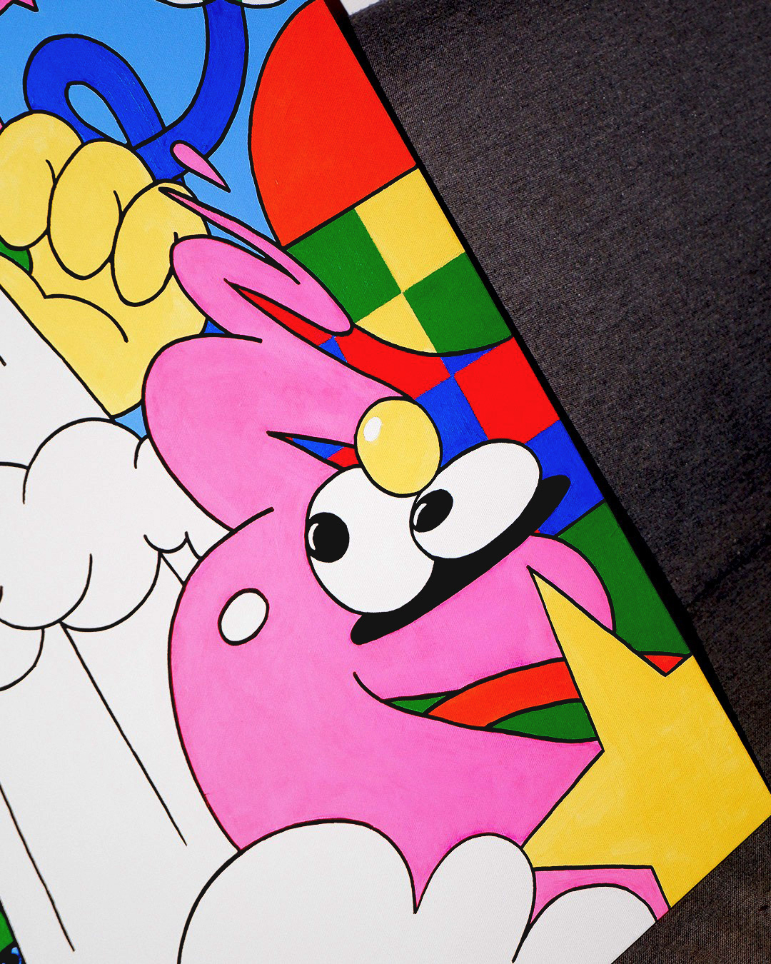 This one is my personal feeling of being in the industry for a long time, a ticking bomb exploding within my subconscious state. The outline is nonlinear, the pressure is random, the texture is uneven, and there’s an inevitable blank state between the burst of colors, just like us struggling in an unhinged world of being creative right now.